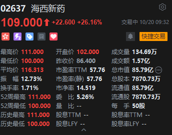 海西新药今日正式登陆港交所主板金诚无忧,首日表现强劲。该股开盘报102港元金诚无忧,较发行价86.40港元上涨18.06%,不计手续费金诚无忧,每手50股可赚780港元。截至发稿,股价维持在109港元。