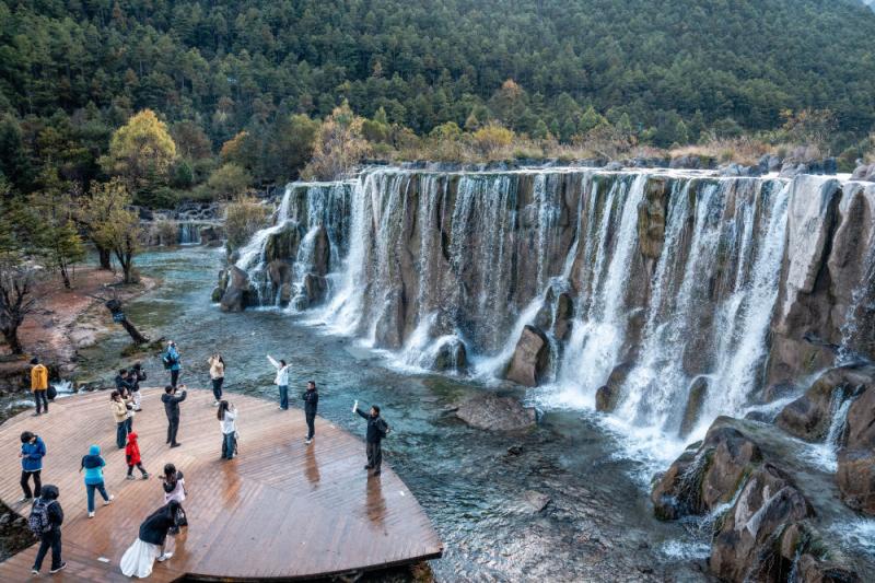 10月26日人们在丽江市玉龙雪山景区蓝月谷徒步 新华社记者 胡超 摄