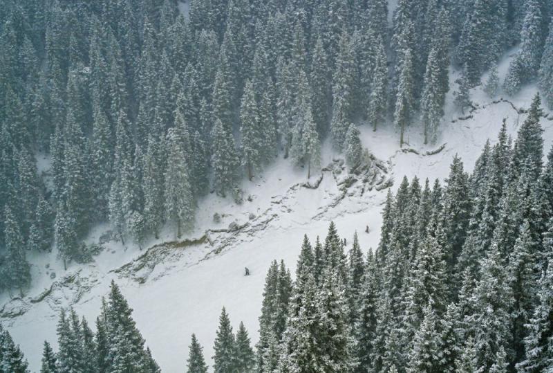游客在新疆乌鲁木齐丝绸之路山地度假区滑雪(2025年1月23日摄,无人机照片)。新华社记者 陈朔 摄