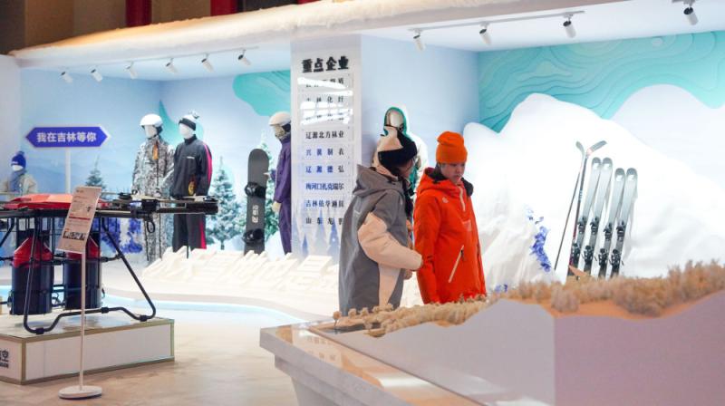 游客在吉林市北大湖滑雪度假区内的冰雪装备展区参观(2024年12月19日摄)。新华社记者 颜麟蕴 摄