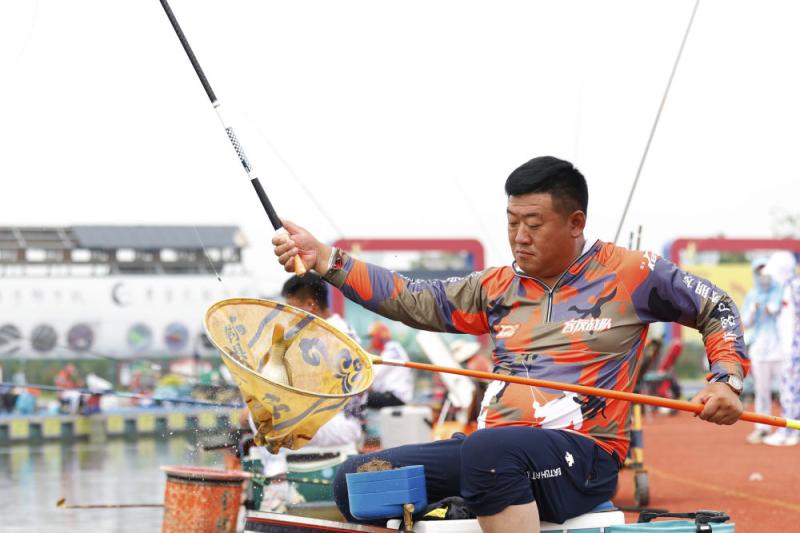 钓鱼爱好者在江苏省宿迁市泗洪洪泽湖国际大圆塘垂钓中心参加垂钓大赛。新华社发(许昌亮摄)
